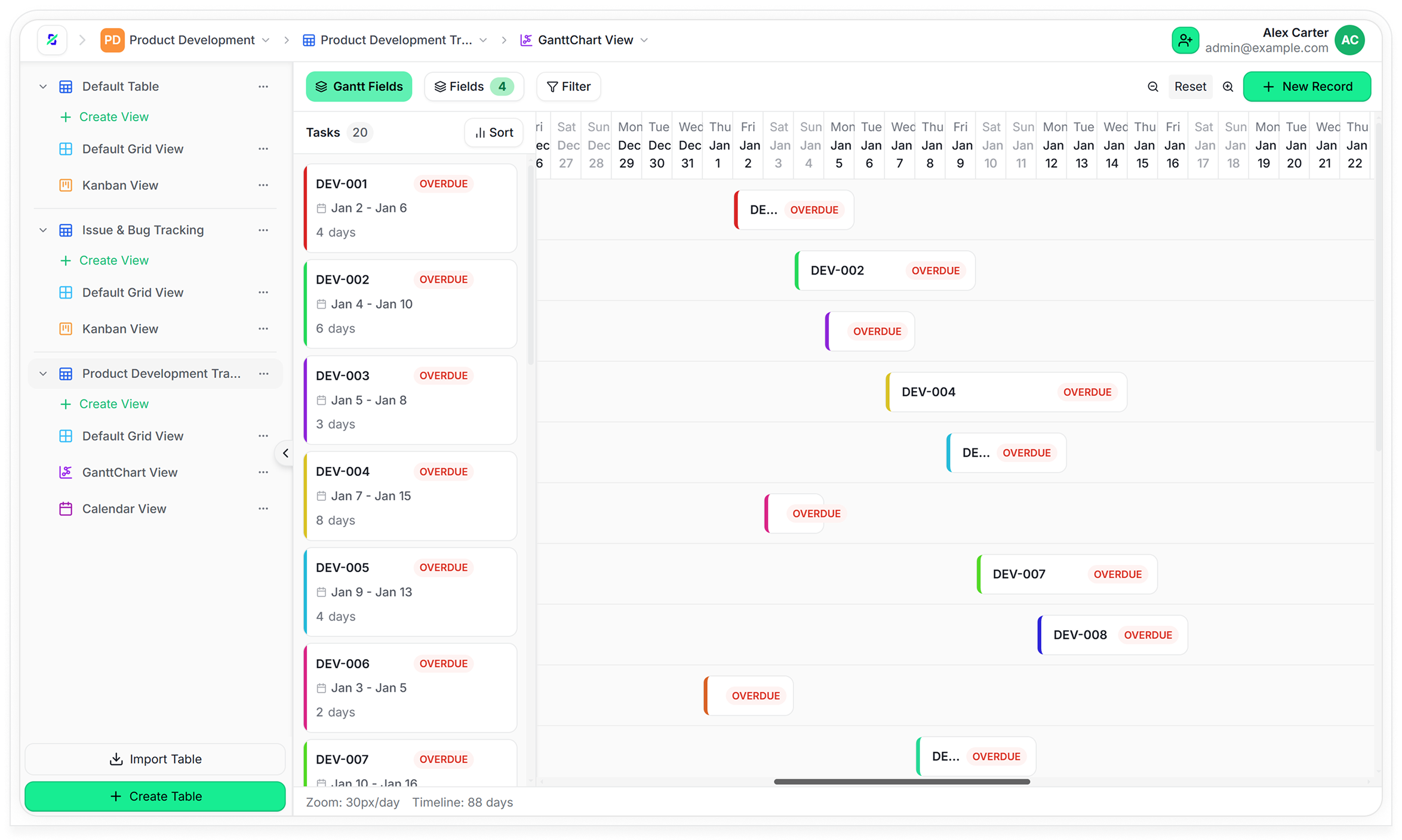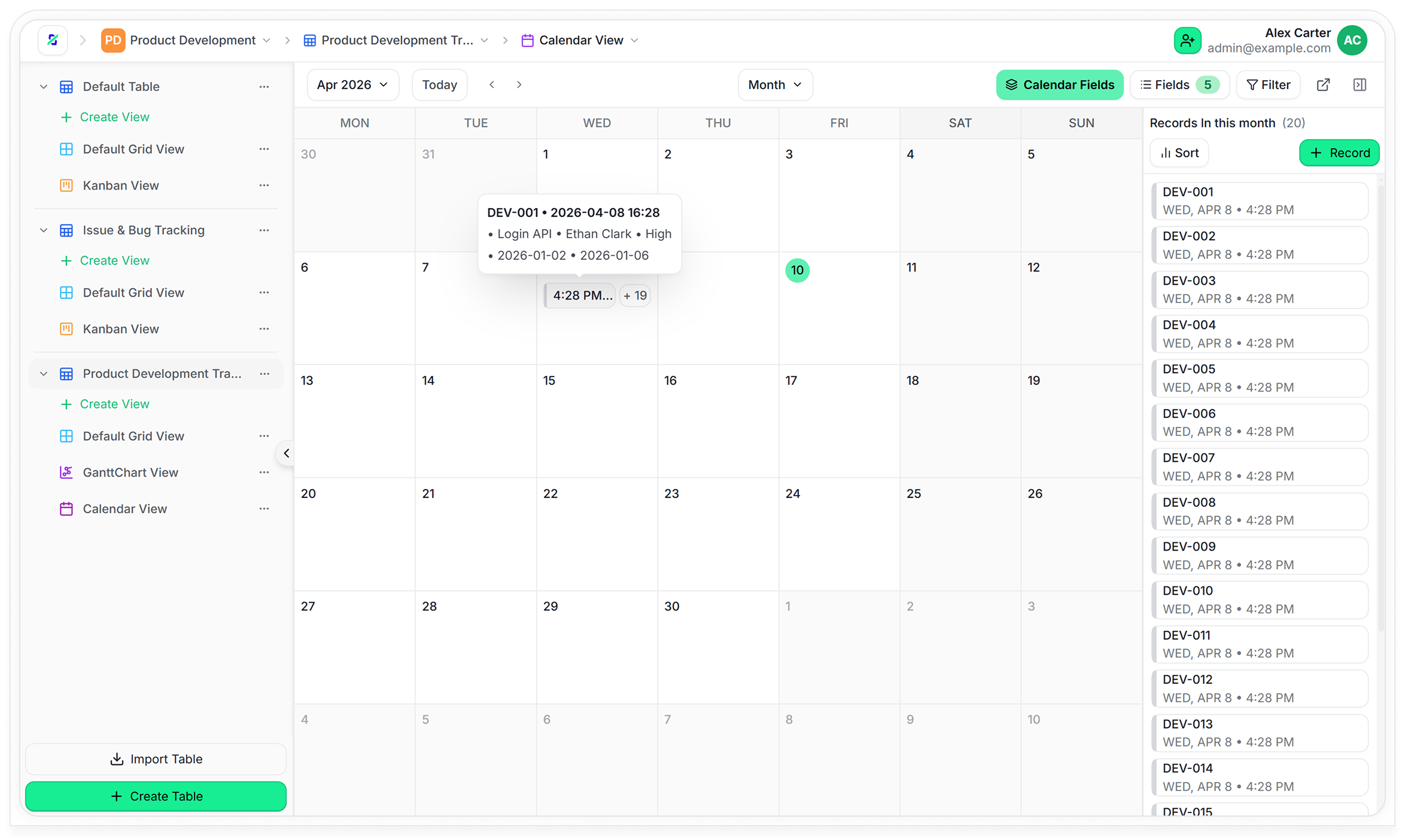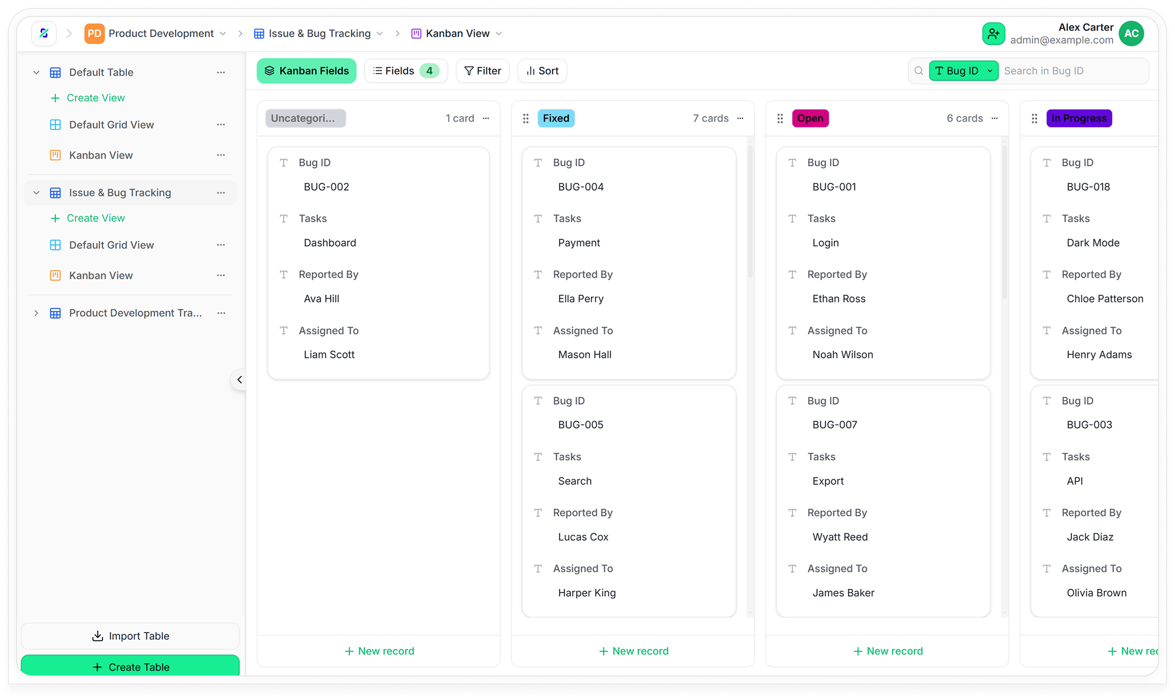Switch between Grid, Kanban, Calendar, and custom views to visualize data the way you want.
