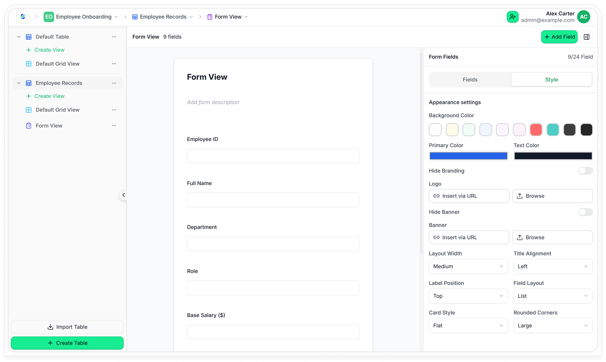 Create tables, relationships, and schemas that actually fit your business — not the other way around.