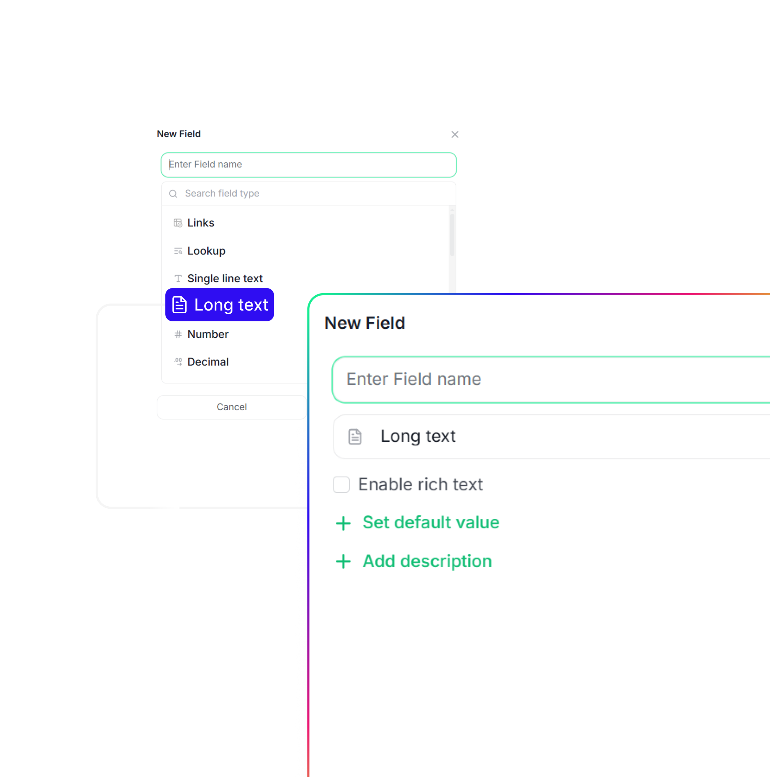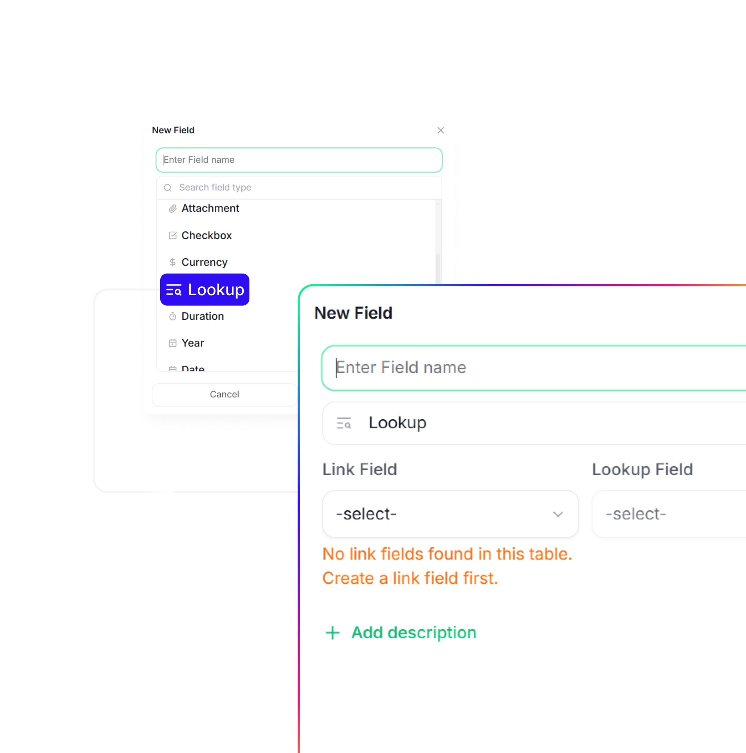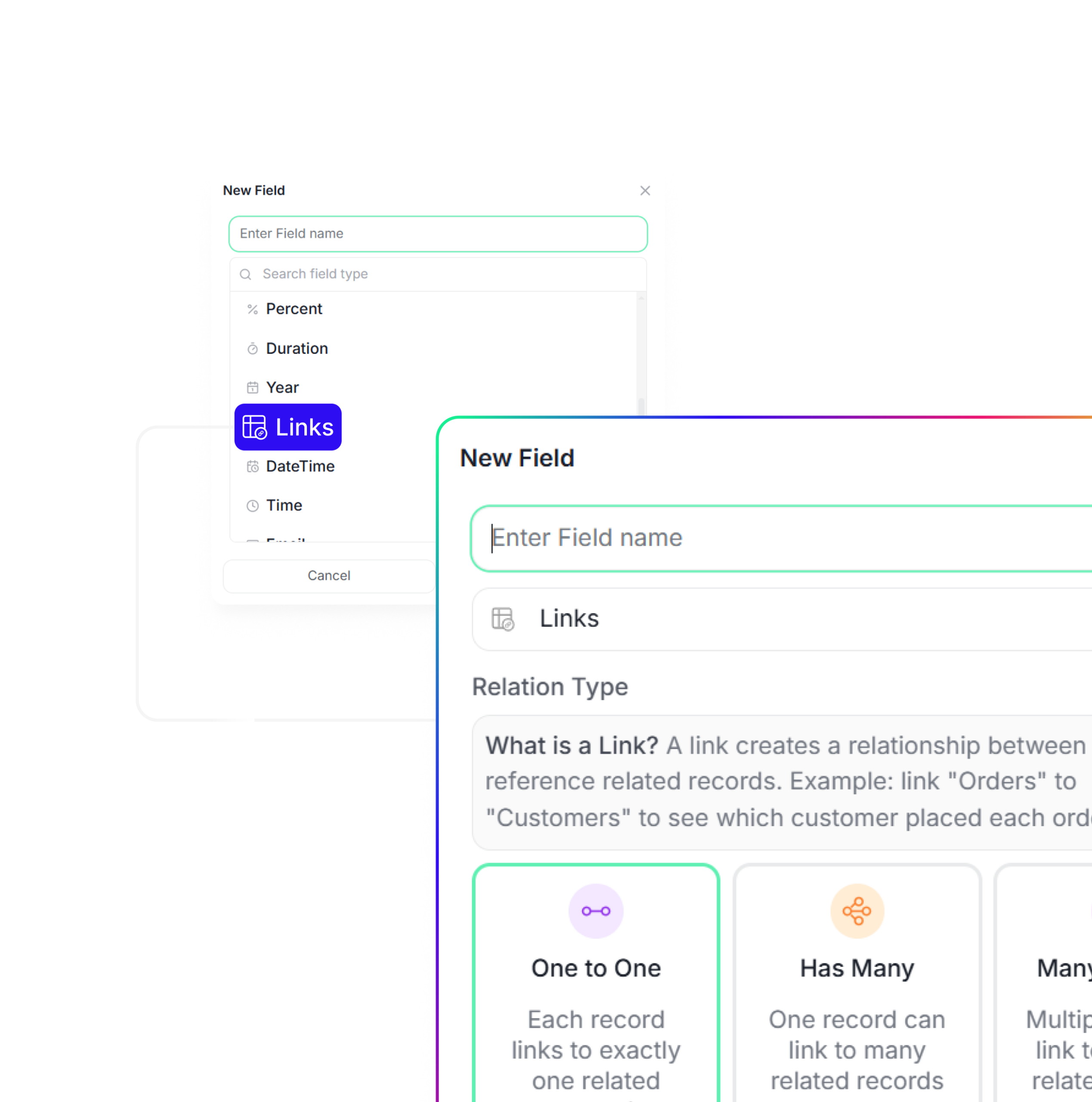 Add the right field types to structure your database and keep your data organized and easy to work with.